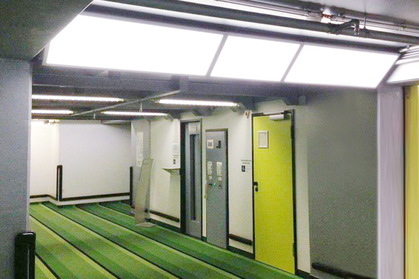 LED-Panel 620 x 620 mm zum Einlegen in Moduldecken mit einem Rastermaß von 625 x 625 mm oder mit seperat erhältlichem Aufbaurahmen. Symmetrische, breitstrahlende Lichtverteilung, geringe Einbautiefe von 10mm, Entblendung für Bildschirmarbeitsplätze, BAP, UGR<19.