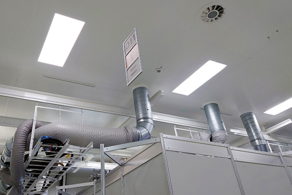 | Befestigung | Werkzeugloses Einlegen in Moduldecken mit einem Rastermaß von 300 x 1200mm oder mit separat erhältlichem Aufbaurahmen |