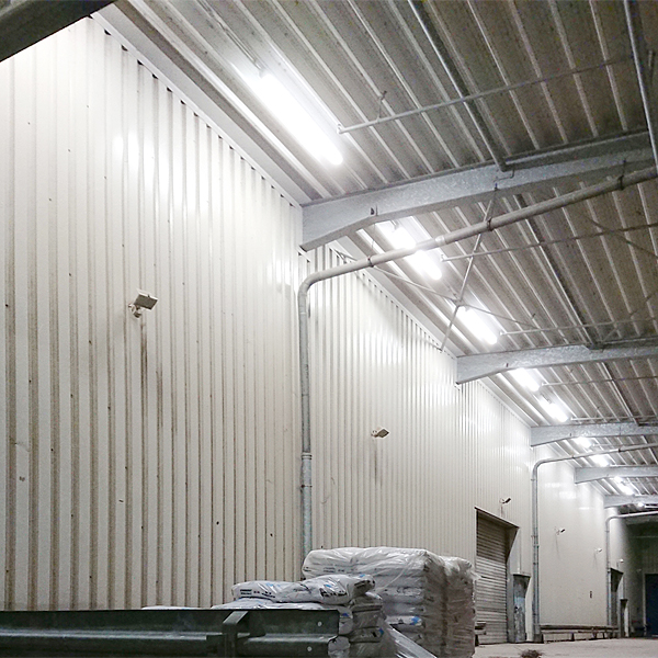 Die Standardausführung mit diffuser Leuchtenabdeckung eignet sich für größere Montagehöhen und sehr breite Ausleuchtungen von beispielsweise Lagern und Gängen.